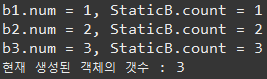 System.out.println("현재 생성된 객체의 갯수 : " + StaticB.count);