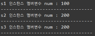 System.out.println("s3 인스턴스 멤버변수 num : " + s3.num);