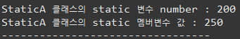 System.out.println("StaticA 클래스의 static 변수 number : " + StaticA.number);