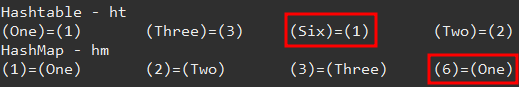 참고로 Hashtable과 HashMap은 저장된 자료들이 key값으로 구분될 뿐 순서가 없어서 무순위로 출력된다. 출력 결과에 대해서는 깊게 생각하지 않아도 된다.