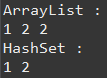 hashSet 또한 add() 메소드를 이용해 값을 저장할 수 있다. 각각의 객체에 1, 2, 2 값을 넣어주자.