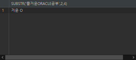SELECT SUBSTR('즐거운 ORACLE 공부', 2, 4) FROM DUAL;