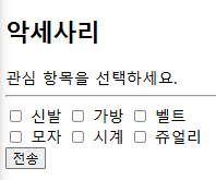 <input type="checkbox" name="item" value="bag"> 가방