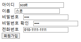 아이디(name="userid") : scott