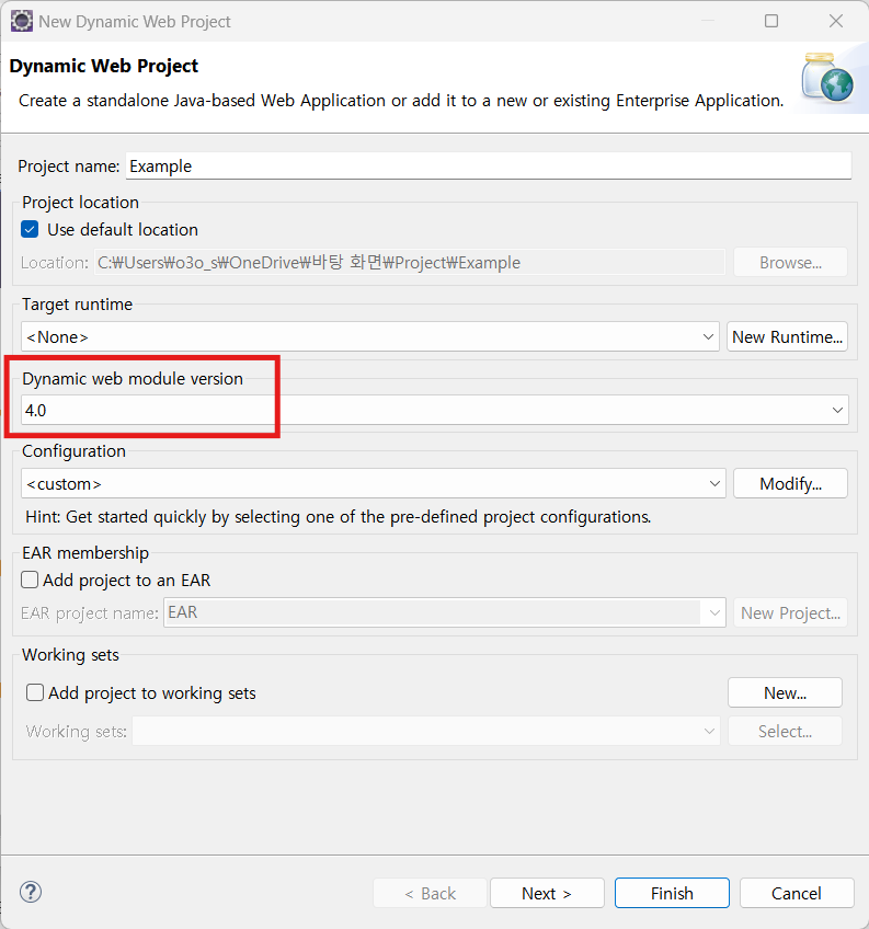 대부분의 웹 서버(Tomcat, JBoss, Glassfish 등)에서는 Dynamic Web Module Version 4.0 이 널리 지원된다고 한다.