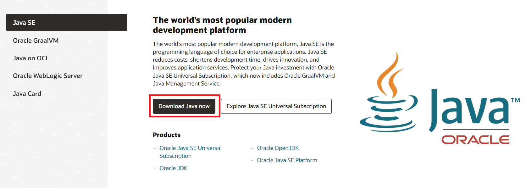 밑으로 쭉 내려서 Java SE 의 Download Java now 클릭