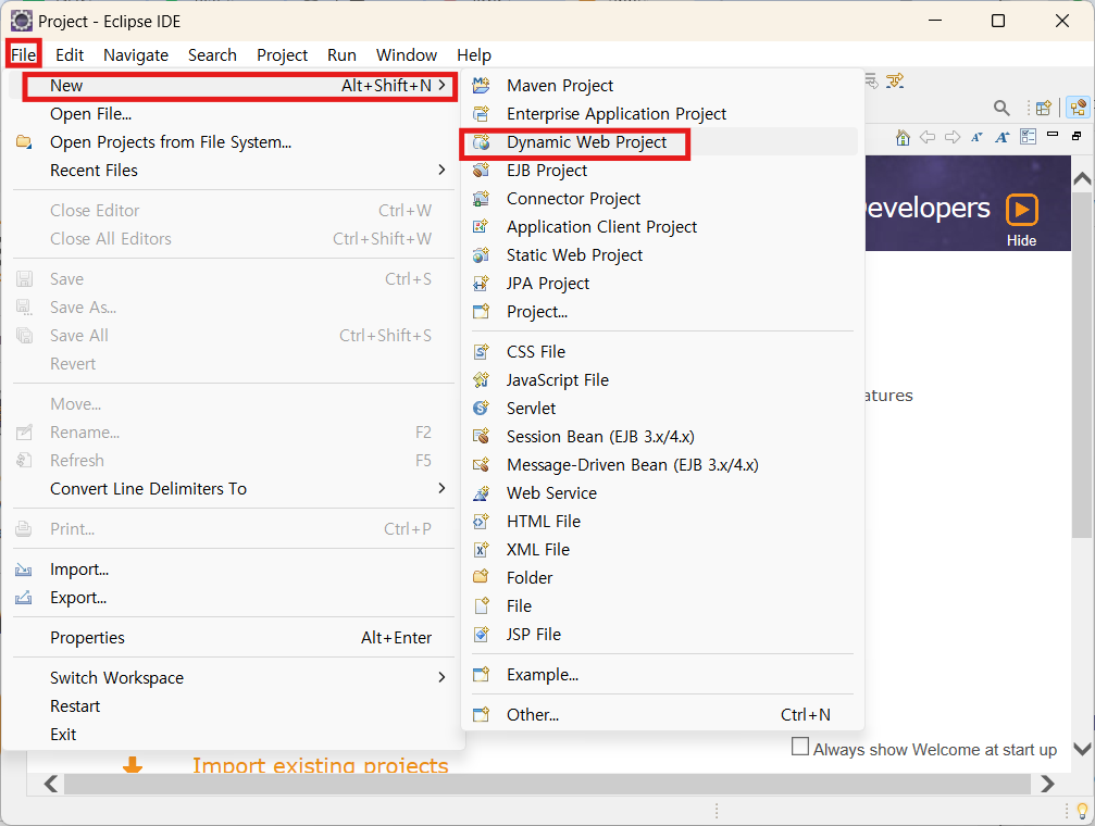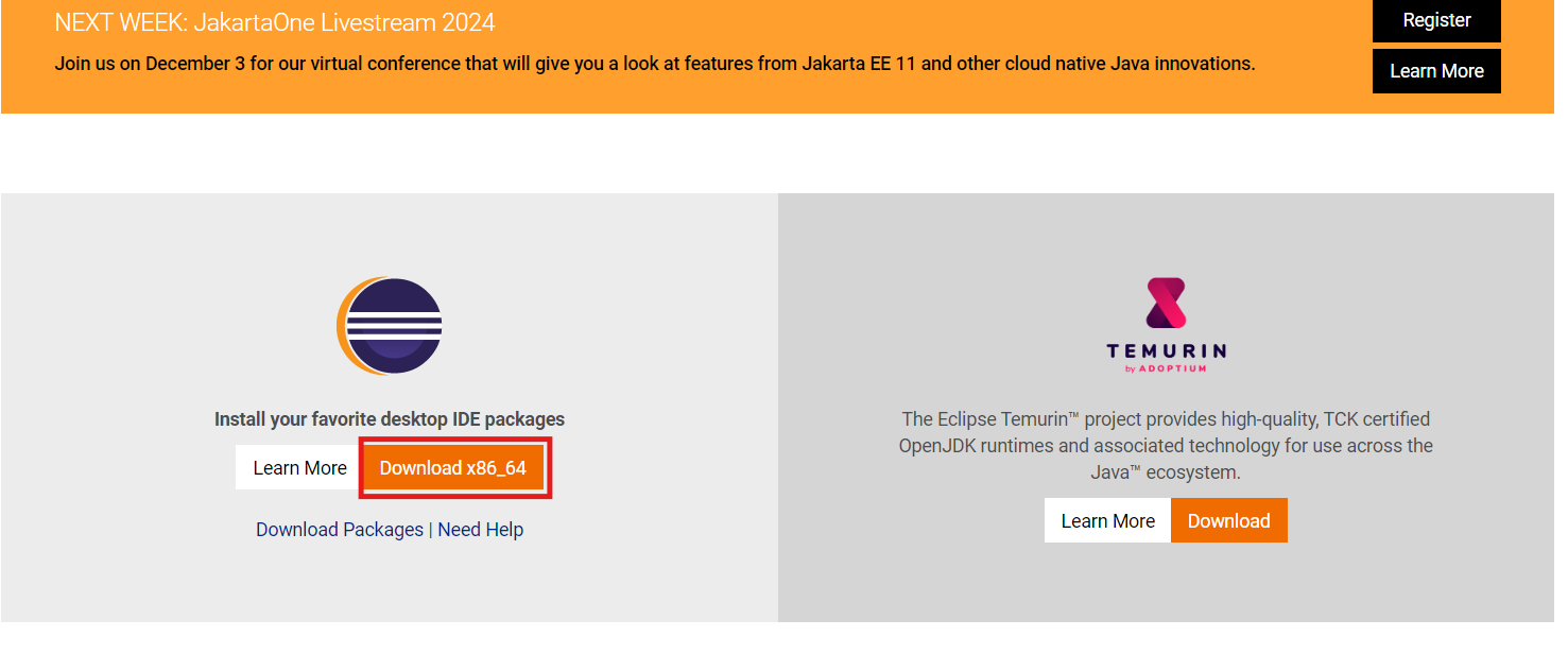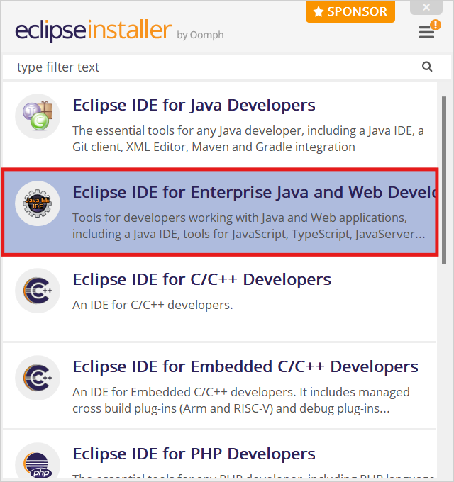 웹개발 용도로 사용할 것이기 때문에 두번째 Eclipse IDE for Enterprise Java and Web Develpoers... 클릭