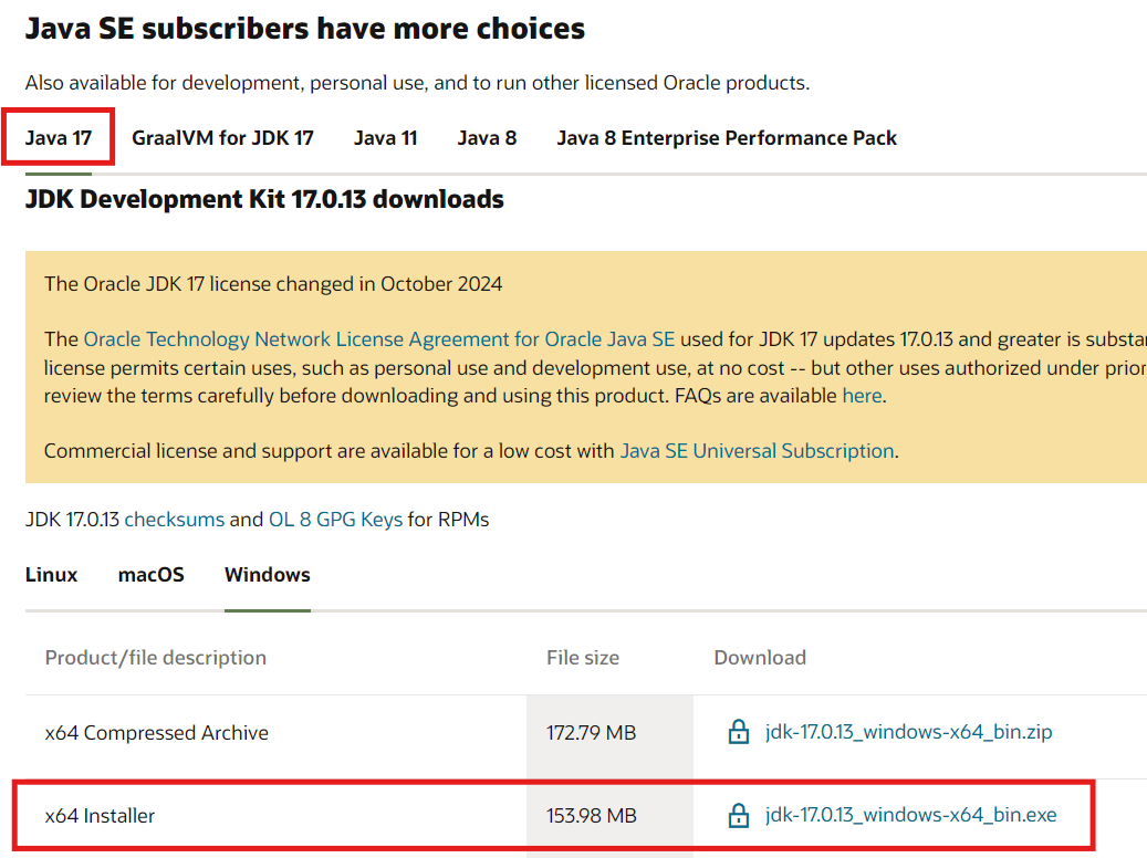 다만 내가 사용할 것은 17버전이기에 밑으로 내려 Java17 버전을 찾아줬다.