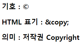 <h2>HTML 표기 : &copy;</h2>