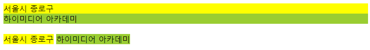<div style="background:yellow">서울시 종로구</div>