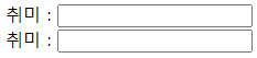취미 : <input type="text" id="hobby"/><br/><br/>