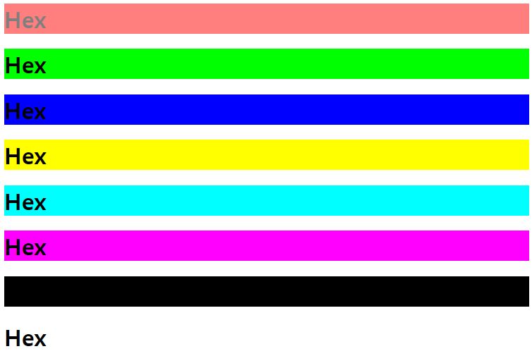 <h1 style="background : #FF00FF;">Hex</h1>