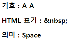 <th width="200">기호</th><th width="200">HTML 표기</th><th>의미</th>