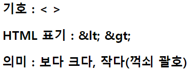 <h2>의미 : 보다 크다, 작다(꺽쇠 괄호)</h2>