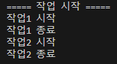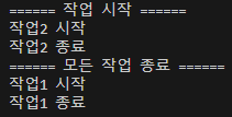실행 순서 자체는 마찬가지로 '작업1 시작' → '작업1 종료' → '작업2 시작' → '작업2 종료' 다.