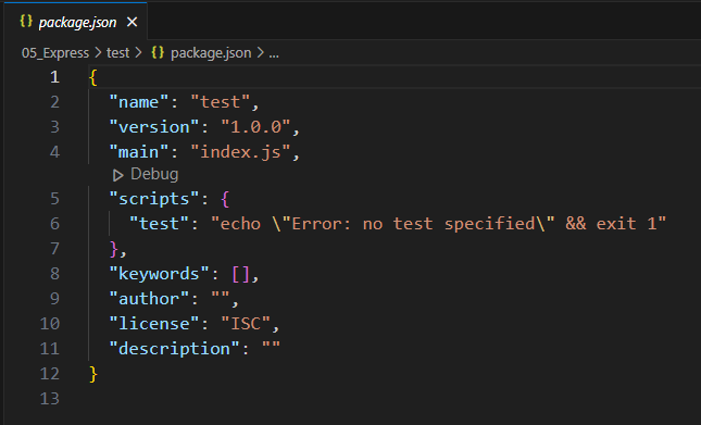 npm init 을 통해 환경이 구성되었다면 package.json 이 만들어진다.