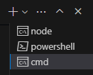 터미널(Terminal) 이 powershell 로 되어있다면 cmd 로 바꿔줘야 한다.