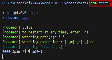 앞으로 node index.js.. node app.js.. 이렇게 파일 이름을 지정해서 서버를 실행하지 않고
