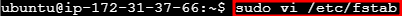 위 명령을 통해 fstab 파일 편집기로 들어가 ' a ' 혹은 ' i ' 버튼을 눌러 편집 모드로 진입하고,