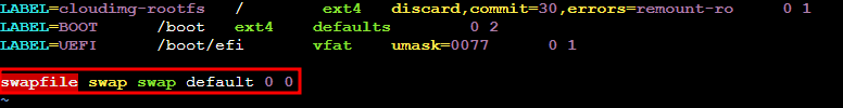 swapfile swap swap default 0 0