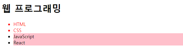 - CSS3부터 지원하는 선택자로, 후손 선택자(공백, >)와 병행해서 많이 사용