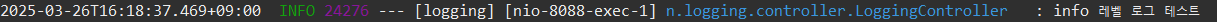 log.info("info 레벨 로그 테스트");