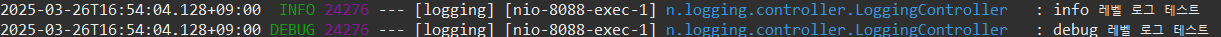 log.debug("debug 레벨 로그 테스트");