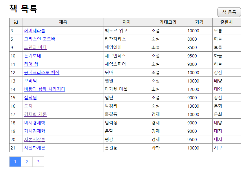 pagination 을 적용시킨 html 까지 작성해주면, 페이지는 다음과 같이 구현된다.