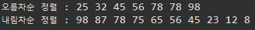 sort("asc", 78, 25, 56, 32, 45, 78, 98);